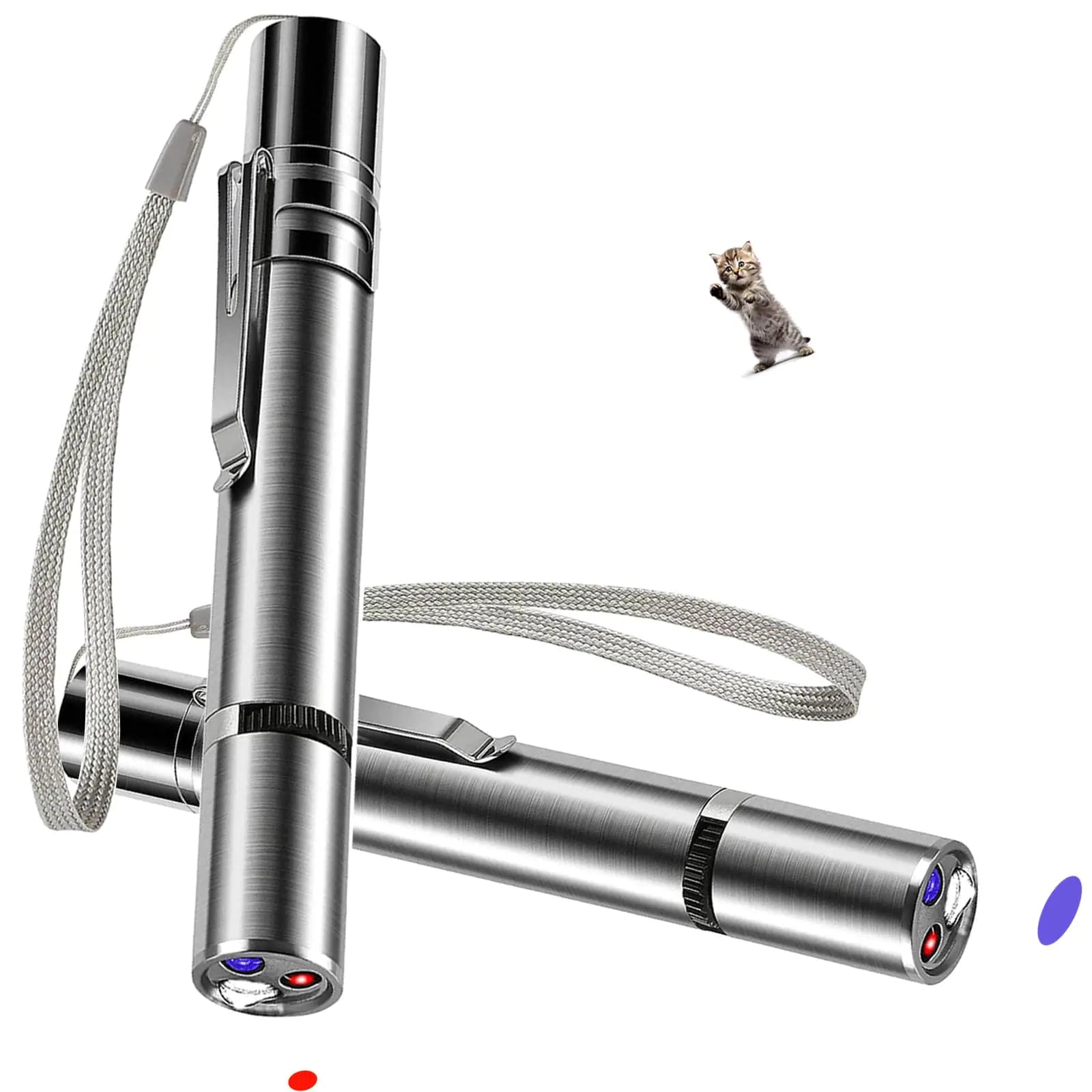 [USB Rechargeable: Our cat laser pointer also known as a laser pointer cat toy has built-in rechargeable batteries. Just unplug the cover and plug it into any USB port to charge; it takes about 1 hour to fully charge Multi-function: cat toy laser mode has 5 kinds can interact with cats in addition you can turn on the switch with just one press. Flashlight mode can glow in the dark; purple mode can detect money "Cat Toys: Excellent interactive cat toys like our lazer for cats a cat can not only bring endless fun but also exercise the pets body and agility. This laser pointer toy can satisfy the curiosity and playfulness of your cat allowing you to scroll gears to easily get five interesting patterns to attract pet interest" Portable design: Exquisite design makes the cat toy small in size. The cat toy adopts metal clip and anti-lost rope design which can be easily put into pockets or bags easy to carry play with cats/dogs anytime anywhere more convenient and fun Gift for pets: With this toy your pet will not feel lonely and it can also enhance the relationship between you and your pet which is the best gift for pets]